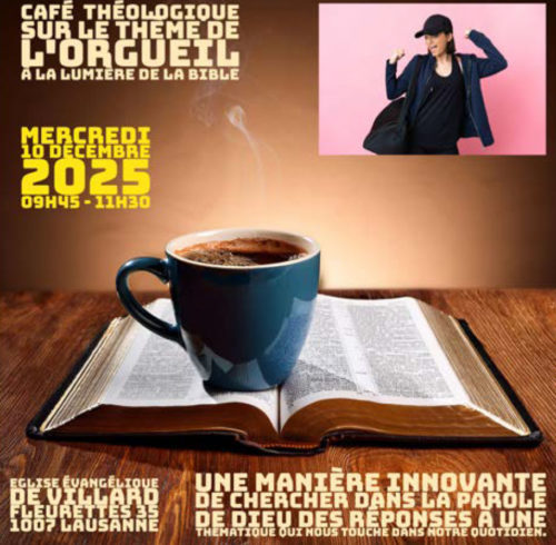 Ch. des Fleurettes 35 1007 Lausanne Eglise Evangélique de Villard Itinéraire CAFÉ THÉOLOGIQUE sur le thème de l’ ORGUEIL à la lumière de la Bible Date mercredi, 10 décembre 2025 Heure 9 h 45 min – 11 h 30 min